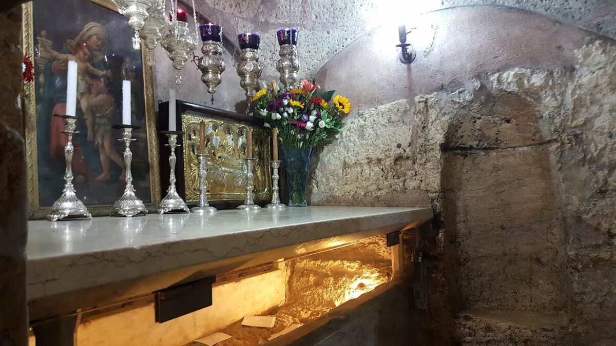 Тоді ж відбувалося предивне чудо. Коли Матір Божа схиляла коліна, масличні дерева, що росли на горі, нахилялися, а коли вона вставала, дерева вирівнювалися.
