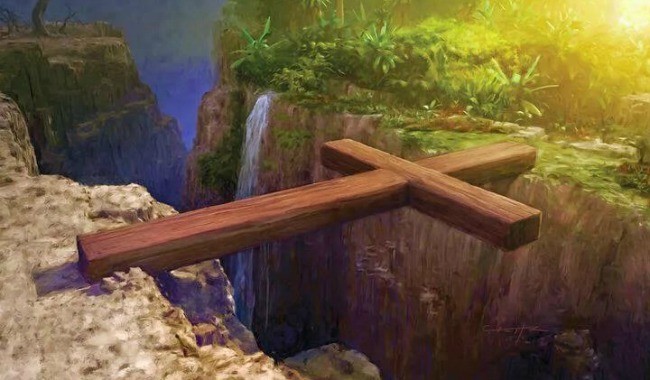 Далі їхній шлях пролягав безлюдною пустелею. Через кілька днів закінчилася їжа. І, як на те, вони опинилися перед несподіваною перешкодою: глибока прірва перегородила їм дорогу. І ніде ніякого моста. Чоловіків охопив розпач. Раптом одному з них спало на думку: «Ми можемо використати замість моста наші хрести».