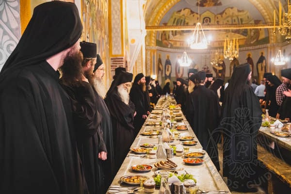 Монастирська трапеза буває тут двічі на день – вранці та ввечері, та супроводжується молитвами до та після. Присутні їдять мовчки, слухають Святе Письмо або уривки з життя та повчань Святих отців Церкви.
