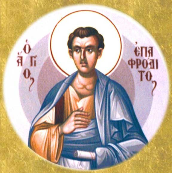 Апостол Єпафродит був одним із найближчих співробітників і сподвижників святого апостола Павла. За різними джерелами, він був єпископом Адріанії в Італії, Адріаки у Фракії або Адріани на Кіпрі. Про нього ідеться у Павловому Посланні до Филипійців6(Флп. 2:25-30, Флп. 4:18).