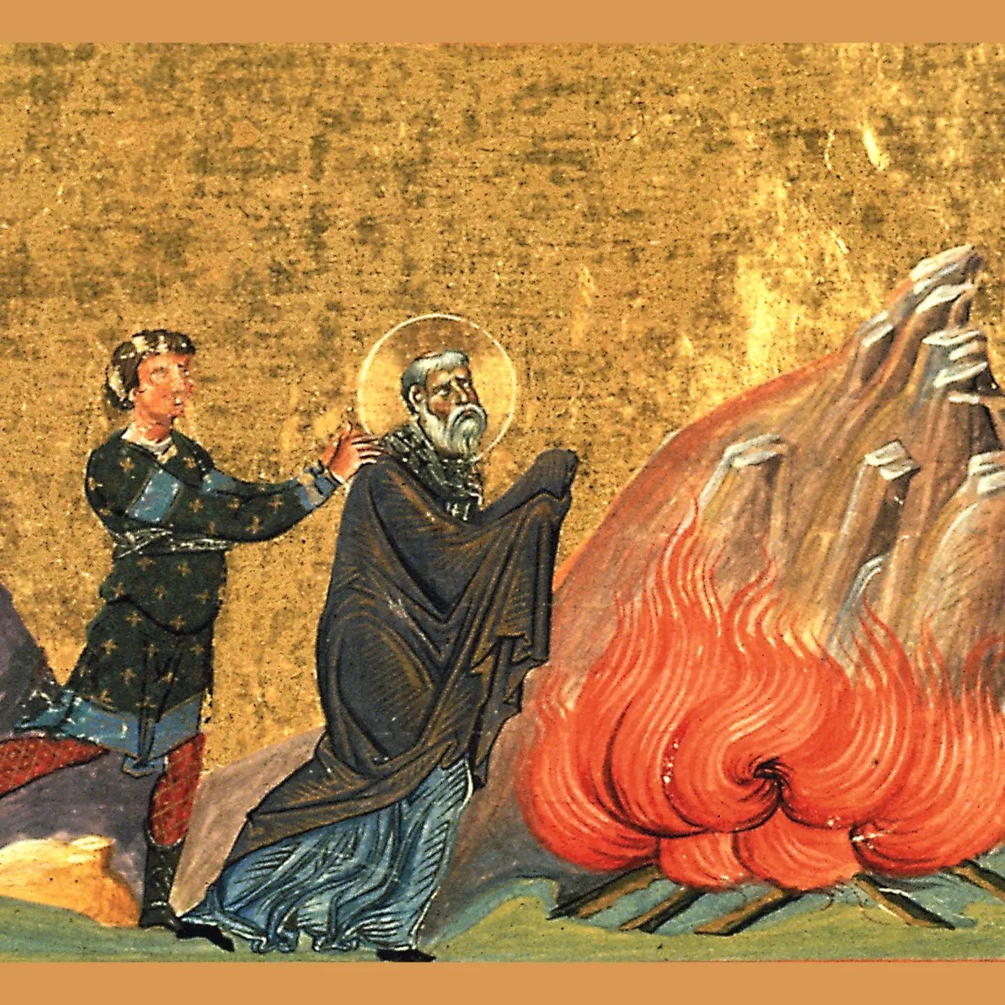 Полум’я охопило страждальця з усіх боків, але він молився та не згорав. Коли полум’я почало вщухати, святий сказав: «Амінь! Господи, прийми дух мій».