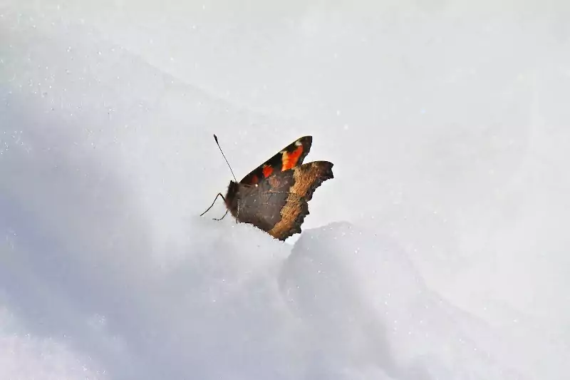 І справді, на снігу сиділи два темні метелики та неквапливо змахували своїми крильцями. Помітивши хлопців, вони спалахнули й полетіли над снігом, ніби перші вісники життя, що прокидається.