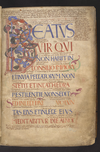 Псалтирь, сарумский устав (Сарум – латинское наименование Солсбери), изготовлена в Англии, возможно в Лондоне. Около 1260 года. Латинский язык. Британская библиотека / The British Library, Add MS 62925. Psalter, Use of Sarum (‘The Rutland Psalter’). Date c 1260. Language Latin. Parchment codex. Dimensions: 285 x 205 mm (text space: 185 x 135 mm). Foliation: ff. 190. Origin: England.