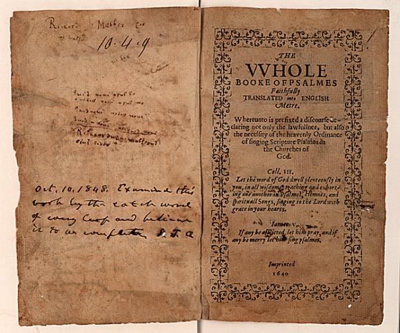 Массачусетская книга псалмов (Bay Psalm Book), изданная в 1640 году. Побила мировой рекорд стоимости одной книги на торгах аукционного дома Sotheby’s в Нью-Йорке. Псалтырь продан анонимному покупателю за 14 млн 165 тыс. долларов, сообщается на сайте аукционного дома.
